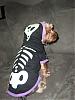 | Therapy Dog Donating Member | Rocky you scary skeleton you! Don't scare the kids too much...lol. Is the costume a glow in the dark one?? It looks like it might be.