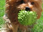 | Ok when I saw this thread, I just had to share my little Maya's favorite toy. The only toy she will really play with is her green spikey, squeaky ball. I first started buying these when she was a puppy, and she is absolutely obsessed with them. It has to be green (I swear - the other colors she will toss to the side!). She has this thing in her mouth just about the whole day. I even wake up with this ball on me or next to me. We are on our third green ball right now (and it's squeaker is gone - but that doesn't matter so much to her or ME!). She has a blue ball but will only play with it if her green ball is lost. If you try to play with another toy, she will take it away, hide it, and bring back her green ball. I've never known a dog to be this picky about its toys, but it is soo funny. I buy these at Petco.com for $3.99. I couldn't find a pic of a green one, so this had to do. http://www.petco.com/Assets/product_...443091500B.jpg