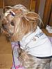 | I just got a package in the mail.....and it was from ADMIN!!!! ![]() Mojo had one a prize in the 2007 YT Halloween Costume Contest for his "Tuff Rocker" costume. We got: A pink YorkieTalk tee (for me) a white YorkieTalk tee (for Mojo) and a YorkieTalk bumper sticker THANKS SO VERY MUCH!! We love all of it!!!Here is Mojo's costume (a close up of the back, since you couldn't see it in the pictures). ![]() ![]() ![]()
