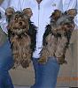 | I think a boy and girl would get a long much better. Fritz is my only boy, and all 3 of my girls get along great with him, yet the girls tend to get a little witchy with eachother. As far as the picture, they always look bigger in the pictures than they really are. Now Fritz is around 6 lbs. and Haley(the big yorkie is 14 lbs), and they get along great.. |