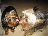 | My friend that turned me onto yorkies had 2 that "french" kissed. Rocket (boy) would kiss Cy (girl, sadly taken @ 9 yrs old by cancer) and she not only tolerated it, she kissed back!! It always set me to giggling my butt off! |