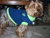 | He looks so cute in his sweater. I think stores are getting the idea that people want dog clothes.