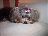 | Love the name! haha I just saw that movie the other night! hehe. SO funny! Any how, my Turbo wears bows when we have an occasion for them. I think as long as they are manly there is no problem with them! This is an OLD pic of him (about a year, but for some reason, I cant find the pics of him in bows right now ). Hope this helps ya, and tell him if they have a top knot he should have a bow! But, when it is a lazy day around the house I just either braid it back, put it in a pony tail or clip it back with a tiny claw clip from wal mart.