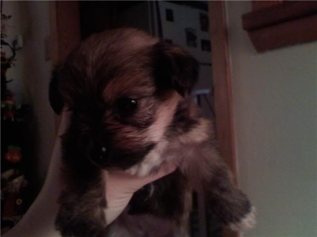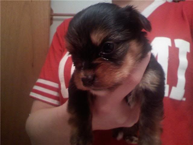 2 Attachment(s) here is a picture of one of the Morkie puppies I had in the past...1st picture is of Bella when she was 8 weeks old...and the 2nd picture is of her this past Xmas...I kinda regret not keeping her...she turned out to be a doll! But i couldn't be more happier with the family I placed her with....they are awesome! And she surprise me because stayed pretty tiny! 4 lbs full grown that is on a good week...hehe |