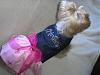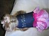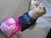 | She makes the cutest clothes. Annie made this harness dress and a matching denim leash for Kacee. Isn't it cute? Thank you, Annie.