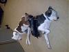 | PIptickle...Is your brown & white dog SITTING on the Black & White dog's BUTT!?!?! THAT is a hoot! |