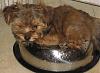 |      Freedom, our new adopted rescue climbs into the large dog water dishes to cool off!! It really has not been that hot here as of lately but he sure enjoys the water!!   He is such a goofey boy!!!  We just love this little guy!     |