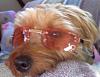 | I was just wondering who all had doggy sunglasses for there babys? Does your baby keep them on and like them? Callie will wear them unless shes up moving around. These are two pics from our trip. Where she wore them until it was time to get out at the rest stop.