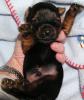 | these little ones are two weeks old today from Trina and Benz. they are so dark their marking are just coming in, the little gal is the one once again that has no dignity "Lexie" and other "Little man Martini"