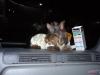 | Yesurday my daddy just got back from what they call a long hall(the hall in our house dont seem long) but anyway He ask mommy to go with him to this place called ST. Louis.So Mom took us with her. (harley and Bobo) I call BoBo my Bubby he's really no kin. We started out a a big place called a truckstop(I can see why if they all stay there they never get anyplace.) Well after putting all our things in the Big truck and getting food (yummy) We was on our way. Daddy set this thing called a cruise control( bubby and I kept watching for the water and a boat but never did see one.) He said if he didn't do that the bears would get us (I sure hope not I hear bears eat ya.) All we ever seen was some cars with red and blue lights on. (It looked like a christmas tree). But we watched real good and thank goodness we didnt see no bears. We had something going to 3 home depot (couldnt figure out for the life of me why they'd all want the same thing). We stopped at the first one and when we got ready to leave buddy and me was setting in daddys seat (we was gonna drive) NOT. We dropped off our last load and started home(we got to stay up passed our bed time) woo hoo. Mommy and Daddy got tired so we stopped and this Big truck had a thing called a bunk beds in it. Well mommy and daddy took us out for our nightly and then daddy got in the bunk, then mommy.(we kinda wondered where we'd sleep) That bed was small. We couldn't let daddy hear us giggle but We hear momma tell him if he didnt give her some covers she was gonna put him in this thing on the wall that dropps down. ( hehe that been a funny site seeing her push daddys butt up there) Well at five oclock mommy and daddy got up and we headed home (man that was early) We get back to the Truck Stop and mommy got in her van she said something lkike colder than a welldiggers *&^% and bubby said what ever i did not to say thatI'd have to eat soap(why don't big people have to eat soap?) Well we made it home and mom fixed coffee and a fire in fireplace and we got cozy. and mommy and daddy went back to bed. I thank they said we was going camping tonight I sure hope camping has a fire. (i'll let you know..)