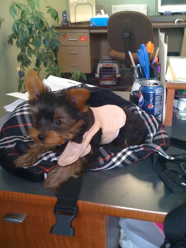 | ![]() Here is picture of Bentley all ready to go to his first vet appointment!!! http://i295.photobucket.com/albums/m.../bentley01.jpg And here he is with me at work!!! http://i295.photobucket.com/albums/m...tleyatwork.jpg He was 2.5 pounds at his vet check.......Clean bill of health!! Oh how I love this baby boy!!!!! Thank you to all for your good wishes for Bentley and I ![]() ![]()