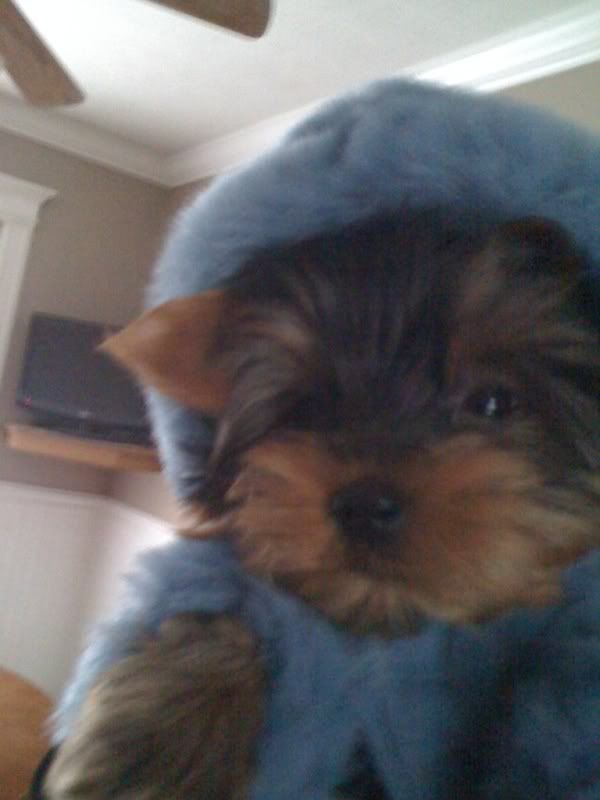 When we got Opi she was 2.2 lbs at 14 weeks now she is just over a year old and a whopping 5 lbs!! Opi is trained for outside, but when it's pouring rain, even with her booties & raincoat she won't go outside, so we'll throw a pad down for her. We've even done it a few times in the last few days with this early cold snap going on. I'm jealous..I want to bring Opi to work. While no one would object..it's an office & workshop-too much coming & going, I would worry.