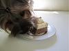 | Wow look how good he is posing next to his cake! Happy birthday yorkie monster. |