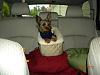 | My dog jumps right into his car seat! he loves going for a ride + having somewhere snuggly to lay down. this pic is from our 9hr trip from Redwood valley ca all the way to LA Ca |