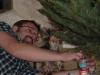 | We got our Christmas tree this weekend and I thought that Aria would be scared of it but instead she keeps eating it! She has been eating the pines on the floor...so we vacummed them all up, then she started walking right up to it to take a bite. Not sure if we should be concerned...we tell her NO but she doesn't seem to listen very well. We were kissing her last night and she just smelled like noble fir. Does anyone else have this problem? Should I consider it a problem? Could she get sick from eating the pines? Attached is a picture of her with daddy as she is about to take a big bite out of the tree and another one of her next to the tree.