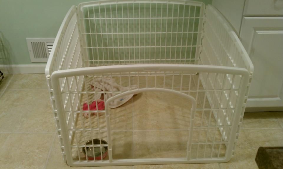 | http://i1239.photobucket.com/albums/...86539307_n.jpg this is jasmin's playpen. we put down two fleece blanket for her, favorite toys and water bowl. |