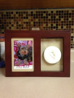 | Yesterday we got the call that Colby was ready to be picked up. Greenbriar went above and beyond our expectations. His box is beautiful. They send with it a lock of his hair, a necklace, a card and certificate, wildflower seeds to plant in his memory, a bookmark, and his remains are in a gold corded velvet bag with the words until we meet again at rainbow bridge. I had another break down yesterday, but I am glad at least a part of him is home again. Thank you for everyone that has been so supportive. We are going to plant the wildflower seeds and have a special stepping stone made for him leading to the flowers.