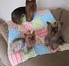 | I was so very lucky to win the raffle from Shinja which is the most beautiful and darling quilt I've ever seen. I am so thrilled with it and love each and everything about it...the colors...the little yorkies with my girl's names, the size...it's so big, the beautiful prints in the fabric...the softness! Thank you SO VERY much, Shinja! I can tell this was made with lots of love and it had to take so much of your precious time. I will forever treasure this beautiful work of art and my dogs also love it. I do believe I got the bestest prize in the raffle. I will be showing this treasure to every one! Love it SO MUCH! Here's pictures!