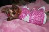 | Senior Yorkie Talker | Hello Yorkie World! I just had to blog about this company that custom designs and makes small dog clothes and of course the supper fantastic washable pee pee pads. They come in dozen of custom fabrics that you get to choose from and are made with the best care and quality. At first I ordered 3 just to see if they really worked and oh my goddess they came in the mail all folded and wrapped in clear plastic with a signature card attach with a string. So cute!!!! I even ran out to the garage to find my husband to show him this special package. He said it looked like ca gift. If the packaging does get you the products will! I love the pee pee pads so much I ordered 4 more and had so much fun choosing the colors and patterns for my yorkie "Bumpkin Baby"!!! I have washed them over and over and they remain the same. Now I have inquired about ordering baby bumpkin diapers for my girlie who is 12,weeks old and loves to run around the house so I don't have to worry about little accidents and big surprises on my carpet. I will be sure to let everyone know what the diapers and matching vest are like. But I already think that they will blow me away!!! Order Now! T.BUMPKIN Order Now!