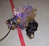 | Lollie and Gypsy Rose aren't really into the whole Halloweenie fun scene, but I think Lacie and I may don the matching Fairey Wood Sprite costumes I made for us to wear in a dog show a couple of years ago. I had a blast making the costumes - you can't really tell it in the pics, but the wings had fiber optic lighting and we literally sparkled as we made our way around the show. Out of a large showing of spectacularly costumed humans and pooches we won first prize. |