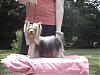 | I gave Kissy a bath and thought I would share a couple of pics. They are not good, Christian had her back end too high and her top knot was falling, the sun light makes her back looked swayed, but she has a dead level top line. Christian kept saying sorry everytime she moved.....lol Its not easy trying to get them perfect. I took her out on her lead for a bit, she strutted perfect, can't wait to get her back in the ring! Angie |