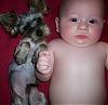 | Yeah they are partners in crime. The cool thing is they have the same birthday, That is one of the reasons I got ritzy he had the same birthdate. He is really gentle with my son and knows ( for noe) not to chew on him. He is learning that the little guy has hands that grab so he usually keeps out of reach of those, They share toys and spit LOL.,.., My mom says EWWWW but this kiddo of mine puts his hands everywhere and I am sure the doctirs office is dirtier than my dog :-) Bonnie |