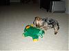 |  My Grandma and Grandpa are here!!!!!  Mommy kept saying that grandma and grandpa were coming and finally last night they arrived.  I even went to the airport to pick them up.  I was so excited to see them and was wiggling like crazy. I'm happy to have them here for Christmas and even slept with them last night. Mommy said she knew that I would.   They brought me this big animal that makes some funny noises. His feet all squeak and his tummy makes a honking noise when I push on it. It took me awhile but he seems kind of fun. 1. what IS that thing????? 2. hmmm what did grandma and grandpa bring me 3. oh! he makes noises!! 4. ok, I think I like it!!!!!