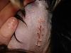 | 1. That's a huge incision for such a teeny girl. 2. There is a little too much space in between each suture, that's why they appear to be gaping. 3. They look pretty good other than the slight redness around the openings.