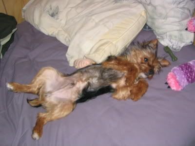| ![]() Now I'm thinking there's something wrong with Stewie. He'll stay in bed as long as I do. He falls asleep around 1030 or 11 every night -- right after he decides to eat and will stay in bed with me until as late as I sleep. Saturday it was until 1PM! http://img.photobucket.com/albums/v5...e/80ac94ca.jpg http://img.photobucket.com/albums/v5...e/f2ee8020.jpg