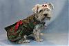 | I haven't posted many pics of the rest of my furbabies. So today I thought I would get some of Sunnie right after his bath. He is modelling his Christmas vest that I made for him and Beamer to wear on Christmas. I also got one of Ladybug modelling the matching dress I made for the 4 girls. Sonya