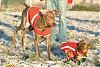 | What great pictures!! Eddie sure is stylin in his winter garb and the eyes say it all on the bigger dog....What a cute little Eddie.