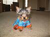 | i'm new to YT, and i absolutely love seeing the varying yorkies around. It just amazes me to know all the variations. I'll post my baby Sophie up, but PLEASE show me your furbaby!! i apologize for the lack of pictures, most of Sophie's pictures are on my lap top, but i will post more if this board is successful and i promise i'm not tortuing her with the clothes, i just always catch her when she's asleep |