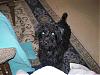 | Thanks for the nice words everyone! My little Tinkerbrat is a rescue mix - a Yorkie poo and her Daddy was a black poodle; thus the black hair. She has a little brown around her muzzle that makes it look auburn - pretty! She's all clean again today after her romp with the Golden. |