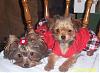 | It's a Yorkie Thing Donating Member | Here is my bunch with thier Valentines Dresses and shirts. First Pic is Lacie and Duchess Second is Gizmo and Teddy. Lacie is awful tired, the puppies are due in 11 days!!!
