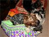| After I left the hospital today my mom bought Sammie Sam a new bed but Frankie and Dova seem to think the bed belongs to them lol the war began and Sammie Sam did win ! |