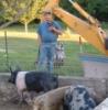 | She sat still for a few pictures, I don't know how you guys get such great pictures of your puppies. It seems like I get the camera out and she gets a crazy bone in her! The last picture is Macy with her Daddy and our other "babies"! She loves the pigs but I won't let her down on the ground by them cause they would use her a play toy!