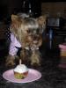 | Yorkie Kisses are the Best! Donating Member | HAPPY BIRTHDAY ROXY ! OH is SHE CUTE !! Love the little cupcake and she is adorable in her party clothes - She even LOOKs like she knows it's her birthday !! Here's a party picture to remember her first birthday ..... |