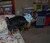 | I love how you were able to capture the in air jump from the couch! His bandana is very nice too!
