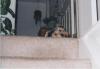 | Those are really sweet pics!! The one on the top of the stairs looks like she is thinking "yeah, I know I'm just soooo sweet.. and I can make your heart melt with my big brown eyes" Is that your husband?? Looks like they are Best friends.. I love seeing our men with our little fur kids... |