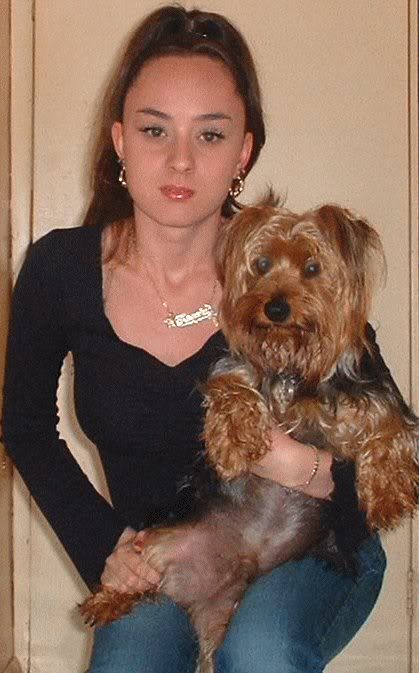 I don't have any pictures with me and the puppy that look nice (me and puppy at 7am, no way!), but I have a picture from last summer of me and my older Yorkie, Maddie.