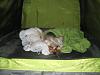 | ........ So his new home just happens to be a tent that his Nana bought him from Petco for $12 (orig 59.99). It zips completely up and all the sides roll up so it is vented, if you want. Its pretty cool. Jess put it together for him and he LOVES it!!!! ![]() Check me out in my new tent! ![]() Can I get a blankie please??? ![]() Much better!