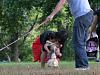 | Evie trying to comfort a little girl that was crying because one of the bigger doggies barked at her.