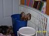 | This is our Sofie...Me & Hubby was on our Computers the Friday night in our Yorkie Room and here I heard a sound...I turned around and looked and didn't see anything...Well I heard it again (We had all the lights off so I couldn't see that good ) I turned around and looked again and our other 3 Yorkies was looking at the back door...I was getting ready to tell Hubby that SOMETHING was outside at the door (I thought someone was trying to come in it ...Even though I keep it locked) I mean as soon as I opened my mouth to tell Hubby...My heart sank when Sofies head popped out of their laundry basket (It a new trash can that I use to put their used blankies in until I wash them.) I thought I would poop my pants... I started laughing instead of screaming once I realized it was Sofie...She had jumped on top of their container I keep their dog food in and jumped into their laundry basket and was sleeping ....I had come in from our Yard Sale at my daughters that eveing and seen her setting on their dog food container and ask her what she was doing setting up there pretty as you please...This photo of her setting on their dog food container was after she was caught sleeping in their laundry basket. Well I figured it out right fast later that night. And by the way I do now have a diaper pail as a laundry basket with a lid on it...Now she was trying to sit on top of it so I put their dog food container on top of it...It's higher then the old laundry basket and I didn't want her to fall off on the tile and hurt herself. Sorry her hair is such a mess...I don't leave hers, Sages or Galahads up at night due to them taking them out. Hugs Lee |