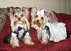 | Living My Yorkie Dream Donating Member | Well, at long last these two little love-pups have tied the knot! Now that Toby is 1 year old and Miss Halle (now Mrs. Toby ) is starting to mature, I gave them my consent to get married.![]() Halle's wedding dress is a LuvMySissy design with matching bow (which I added a veil to) and panties. Toby's tux was a gift from his GE buddy Gracie2006. So without further ado, please join me in congratulating the new, Mr. and Mrs.!
