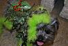 | Donating YT 2000 Club Member | We got the idea from someone on here to make a Swamp Thing Costume for Halloween. Jaxon won 1st at the Petsmart Contest & Most Original at our Kennel! I sewed fish net on a shirt, tied on little snakes, glued on a aligator on his back & then tied on neon green fluff to look like moss trailing him. I bought the lightweight black chain at Lowe's to hook up to him! Jaxon won a $20. GC from Petsmart & a $25. GC from our kennel!