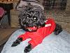 | Tink has been so cold this winter. Her sweatshirts are just wearing out. So I begged my favorite sweatshirt maker (curently retired from sewing) to make her a Longhorn sweatshirt (UT Austin) and a UW sweatshirt to help keep her warm. Here she is all warm and toasty. |