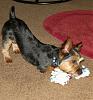 | Oh my!! How cute is that!! Sorry your thread must have gotten burried!! Tucker sure is a cutie pie!!! he sure does love his rope toy!! |