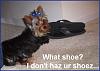 | Cutest little shoe thief I have ever seen. Maybe he was guarding them lol.