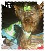 | She sure has the evil Yorkie stare!!! How cute she looks in her dress and bow! |