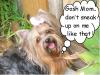 | Yorkie Kisses are the Best! Donating Member | Ok....I was just a LITTLE bored this morning - Here is SPY Girl in her NEW spot - she really thinks no one can see her and all I see is her peeking back at me to see if I'm watching her - If she could talk - THIS is what she'd be saying...... the captions go from LEFT to Right |